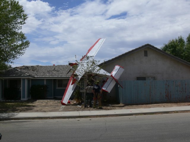 Bill Aronson's Tomahawk, landing accident. Rosamond's gusty winds put this Tomahawk on its back. Although certainly related to crash damage, the fuselage fracture actually occurred during the recovery process.